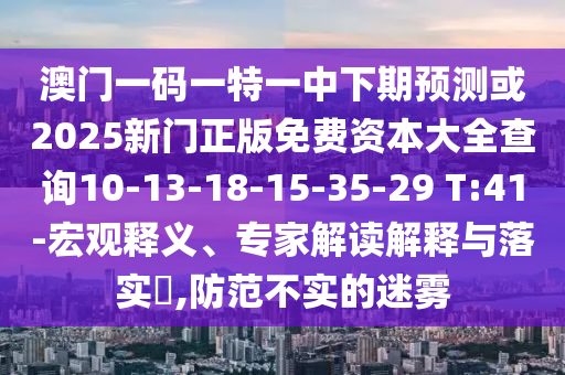 澳門一碼一特一中下期預測或2025新門正版免費資本大全查詢10-13-18-15-35-29 T:41的宏觀釋義、專家解讀解釋與落實?