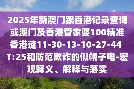 2025年新澳門跟香港記錄查詢或澳門及香港管家婆100精準香港謎11-30-13-10-27-44 T:25:宏觀釋義、解釋與落實
