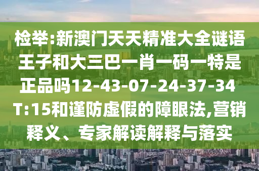 關于檢舉“新澳門天天精準大全謎語王子和大三巴一肖一碼一特是正品嗎”等相關內容的釋義、解釋與落實,以及提醒公眾警惕虛假宣傳