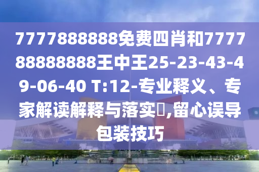 7777888888免費四肖和777788888888王中王25-23-43-49-06-40 T:12-專業釋義、專家解讀解釋與落實?,留心誤導包裝技巧