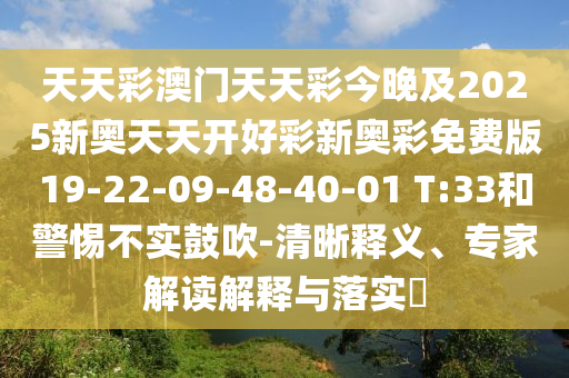 天天彩澳門天天彩今晚及2025新奧天天開好彩新奧彩免費版19-22-09-48-40-01 T:33和警惕不實鼓吹-清晰釋義、專家解讀解釋與落實?