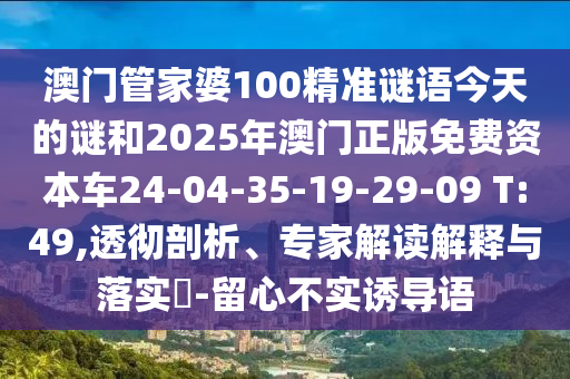 澳門管家婆100精準謎語今天的謎和2025年澳門正版免費資本車24-04-35-19-29-09 T:49,透徹剖析、專家解讀解釋與落實?-留心不實誘導語