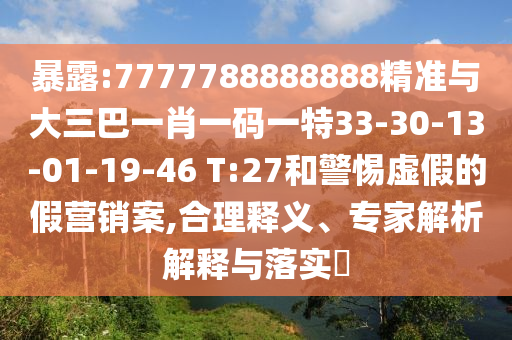 暴露:7777788888888精準與大三巴一肖一碼一特33-30-13-01-19-46 T:27和警惕虛假的假營銷案,合理釋義、專家解析解釋與落實?