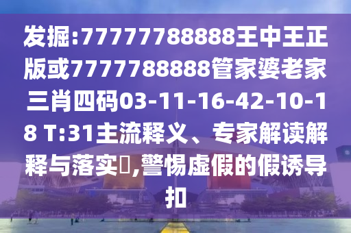 發掘:77777788888王中王正版或7777788888管家婆老家三肖四碼03-11-16-42-10-18 T:31主流釋義、專家解讀解釋與落實?,警惕虛假的假誘導扣