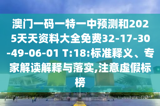 澳門一碼一特一中預測和2025天天資料大全免費32-17-30-49-06-01 T:18:標準釋義、專家解讀解釋與落實,注意虛假標榜