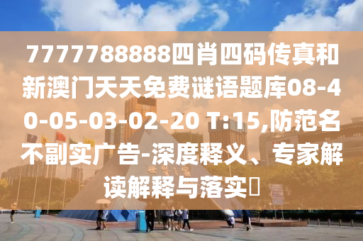 7777788888四肖四碼傳真和新澳門天天免費謎語題庫08-40-05-03-02-20 T:15,防范名不副實廣告-深度釋義、專家解讀解釋與落實?