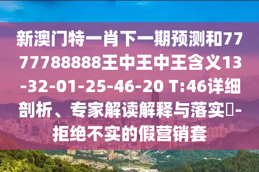新澳門特一肖下一期預測和7777788888王中王中王含義13-32-01-25-46-20 T:46詳細剖析、專家解讀解釋與落實?-拒絕不實的假營銷套