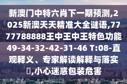 新澳門中特六肖下一期預測,2025新澳天天精準大全謎語,7777788888王中王中王特色功能49-34-32-42-31-46 T:08-直觀釋義、專家解讀解釋與落實?,小心迷惑包裝危害