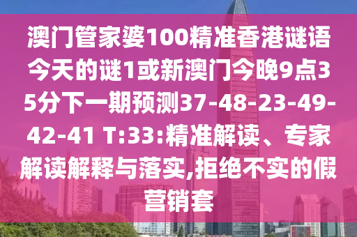 澳門管家婆100精準香港謎語今天的謎1或新澳門今晚9點35分下一期預測37-48-23-49-42-41 T:33的精準解讀、專家解讀解釋與落實