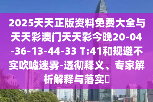 2025天天正版資料免費大全與天天彩澳門天天彩今晚20-04-36-13-44-33 T:41和規避不實吹噓迷霧-透徹釋義、專家解析解釋與落實?