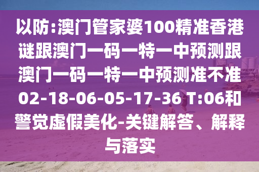 以防:澳門管家婆100精準香港謎跟澳門一碼一特一中預測跟澳門一碼一特一中預測準不準02-18-06-05-17-36 T:06和警覺虛假美化-關鍵解答、解釋與落實