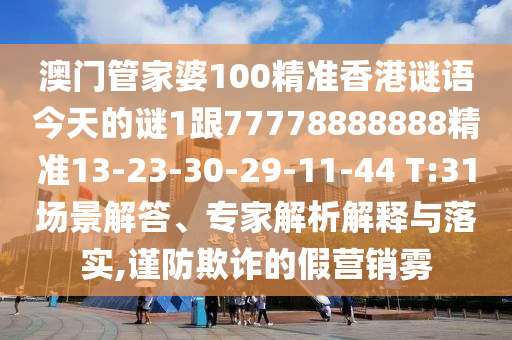 澳門管家婆100精準香港謎語今天的謎1跟77778888888精準13-23-30-29-11-44 T:31場景解答、專家解析解釋與落實,謹防欺詐的假營銷霧