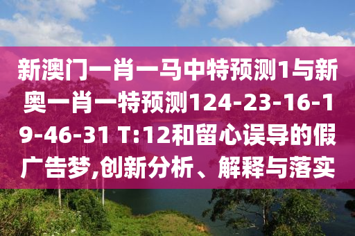 新澳門一肖一馬中特預測1與新奧一肖一特預測124-23-16-19-46-31 T:12和留心誤導的假廣告夢,創新分析、解釋與落實