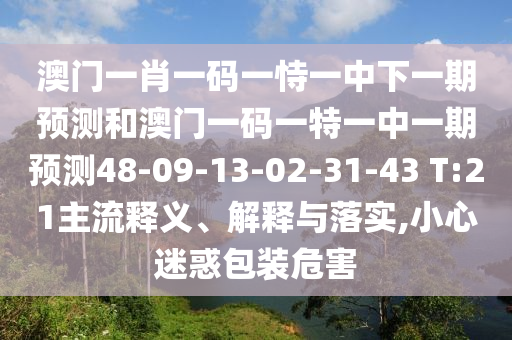 澳門一肖一碼一恃一中下一期預(yù)測和澳門一碼一特一中一期預(yù)測48-09-13-02-31-43 T:21主流釋義、解釋與落實(shí),小心迷惑包裝危害
