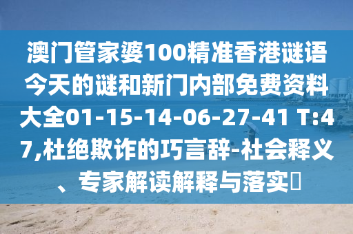 澳門管家婆100精準香港謎語今天的謎和新門內部免費資料大全01-15-14-06-27-41 T:47,杜絕欺詐的巧言辭-社會釋義、專家解讀解釋與落實?