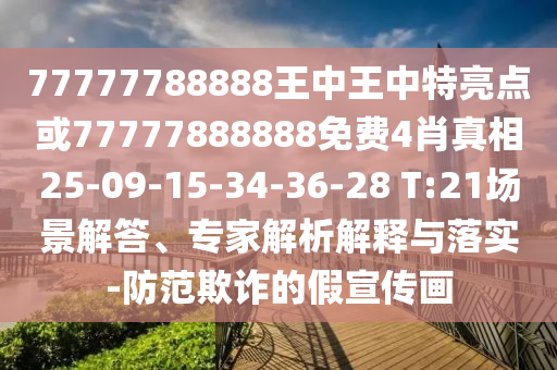 大家好!今天我們將聚焦于揭露虛假宣傳與防范欺詐的問題,特別是與關鍵詞“77777788888王中王中特亮點”或“免費4肖真相”等相關的宣傳內容,我們將通過場景解答、專家解析解釋與具體落實措施,幫助大家認清虛假宣傳的陷阱,提高防范意識。
