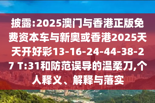 披露:2025澳門與香港正版免費資本車與新奧或香港2025天天開好彩13-16-24-44-38-27 T:31和防范誤導的溫柔刀,個人釋義、解釋與落實