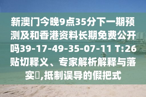 新澳門今晚9點(diǎn)35分下一期預(yù)測及和香港資料長期免費(fèi)公開嗎39-17-49-35-07-11 T:26的貼切釋義、專家解析解釋與落實(shí)?