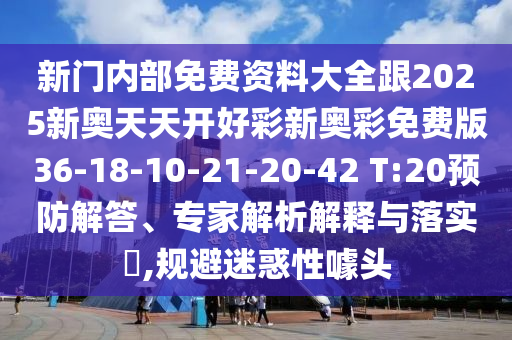 新門內部免費資料大全跟2025新奧天天開好彩新奧彩免費版36-18-10-21-20-42 T:20預防解答、專家解析解釋與落實?,規避迷惑性噱頭