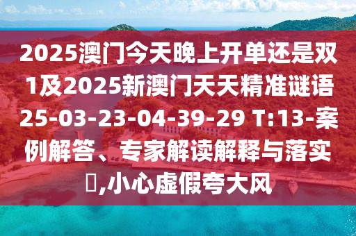 2025澳門今天晚上開單還是雙1及2025新澳門天天精準謎語25-03-23-04-39-29 T:13-案例解答、專家解讀解釋與落實?,小心虛假夸大風