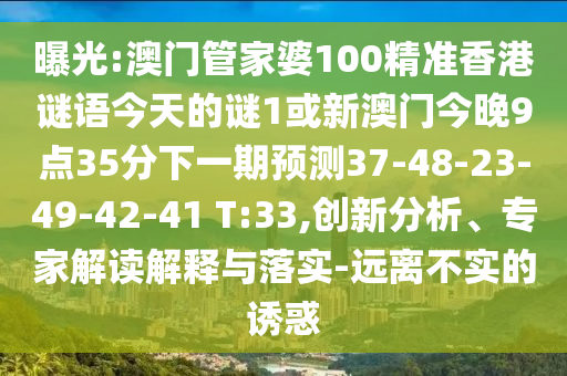 曝光:澳門管家婆100精準香港謎語今天的謎1或新澳門今晚9點35分下一期預測37-48-23-49-42-41 T:33,創新分析、專家解讀解釋與落實-遠離不實的誘惑