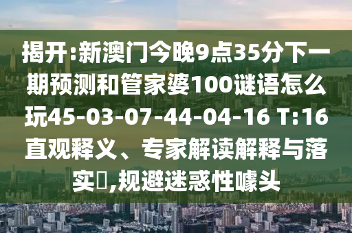 新澳門今晚9點35分下一期預測和管家婆100謎語怎么玩45-03-07-44-04-16 T:16的直觀釋義、專家解讀解釋與落實?
