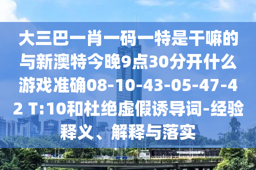 大三巴一肖一碼一特是干嘛的與新澳特今晚9點30分開什么游戲準確08-10-43-05-47-42 T:10和杜絕虛假誘導詞-經驗釋義、解釋與落實