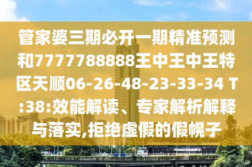 管家婆三期必開(kāi)一期精準(zhǔn)預(yù)測(cè)和7777788888王中王中王特區(qū)天順06-26-48-23-33-34 T:38:效能解讀、專(zhuān)家解析解釋與落實(shí)