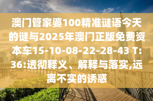 澳門管家婆100精準謎語今天的謎與2025年澳門正版免費資本車15-10-08-22-28-43 T:36:透徹釋義、解釋與落實,遠離不實的誘惑