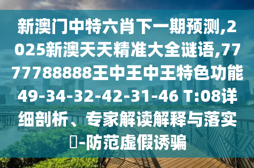 新澳門中特六肖下一期預(yù)測(cè),2025新澳天天精準(zhǔn)大全謎語(yǔ),7777788888王中王中王特色功能49-34-32-42-31-46 T:08詳細(xì)剖析、專家解讀解釋與落實(shí)?-防范虛假誘騙