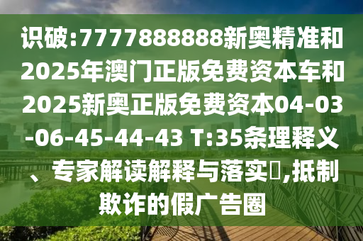 7777888888新奧精準(zhǔn)和2025年澳門(mén)正版免費(fèi)資本車(chē)和2025新奧正版免費(fèi)資本04-03-06-45-44-43 T:35:條理釋義、專(zhuān)家解讀解釋與落實(shí)?