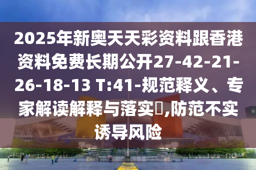 2025年新奧天天彩資料跟香港資料免費長期公開27-42-21-26-18-13 T:41的規范釋義、專家解讀解釋與落實?