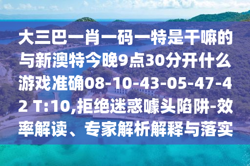 大三巴一肖一碼一特是干嘛的與新澳特今晚9點30分開什么游戲準確08-10-43-05-47-42 T:10,拒絕迷惑噱頭陷阱-效率解讀、專家解析解釋與落實