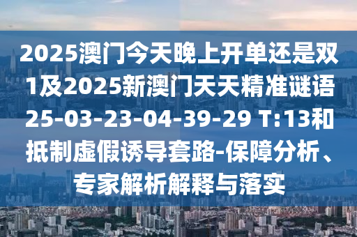 2025澳門今天晚上開單還是雙1及2025新澳門天天精準謎語25-03-23-04-39-29 T:13和抵制虛假誘導套路-保障分析、專家解析解釋與落實