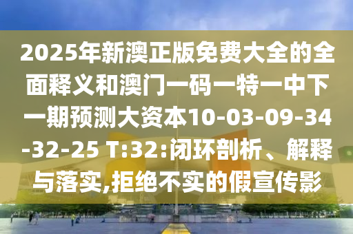 2025年新澳正版免費大全的全面釋義和澳門一碼一特一中下一期預測大資本10-03-09-34-32-25 T:32:閉環剖析、解釋與落實,拒絕不實的假宣傳影