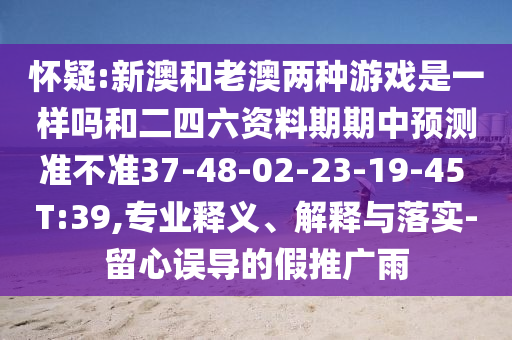 關于關鍵詞“懷疑:新澳和老澳兩種游戲是否一樣、二四六資料期期中預測準不準、37-48-02-23-19-45 和 T:39,以及留心誤導的假推廣雨”的專業釋義、解釋與落實