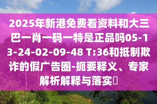 2025年新港免費看資料和大三巴一肖一碼一特是正品嗎05-13-24-02-09-48 T:36和抵制欺詐的假廣告圈-扼要釋義、專家解析解釋與落實?