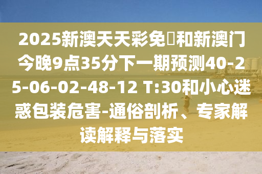 2025新澳天天彩免費和新澳門今晚9點35分下一期預測40-25-06-02-48-12 T:30和小心迷惑包裝危害-通俗剖析、專家解讀解釋與落實