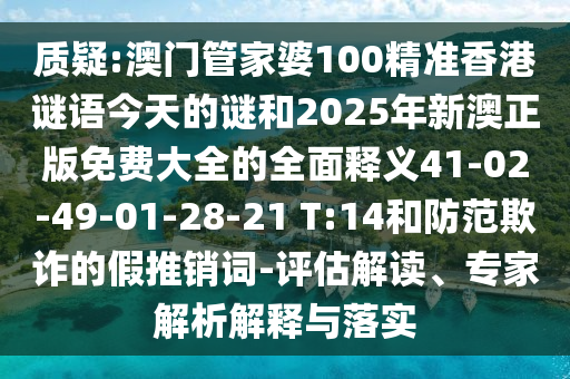 質(zhì)疑:澳門管家婆100精準(zhǔn)香港謎語(yǔ)今天的謎和2025年新澳正版免費(fèi)大全的全面釋義41-02-49-01-28-21 T:14和防范欺詐的假推銷詞-評(píng)估解讀、專家解析解釋與落實(shí)
