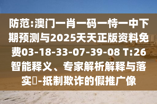 澳門一肖一碼一恃一中下期預測與2025天天正版資料免費03-18-33-07-39-08 T:26的智能釋義、專家解析解釋與落實?