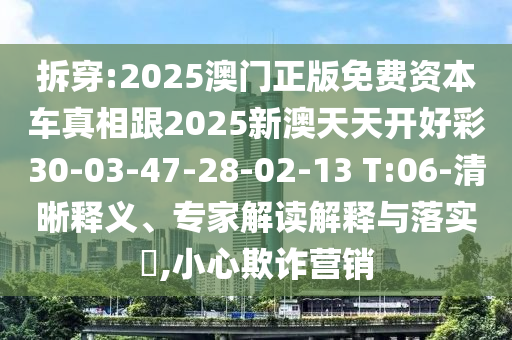 2025澳門正版免費資本車真相跟2025新澳天天開好彩30-03-47-28-02-13 T:06的清晰釋義、專家解讀解釋與落實?