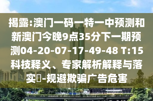 關于揭露澳門一碼一特一中預測和新澳門今晚9點35分下一期預測等相關內容的科技釋義、專家解析及如何規避欺騙廣告危害