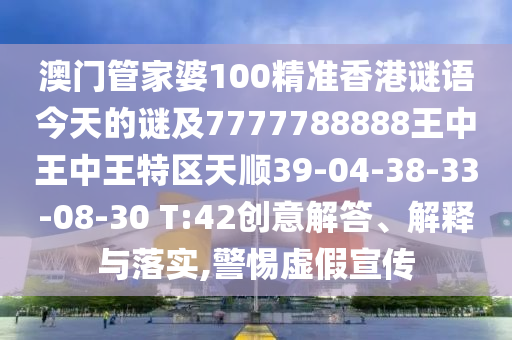 澳門管家婆100精準(zhǔn)香港謎語今天的謎及7777788888王中王中王特區(qū)天順39-04-38-33-08-30 T:42創(chuàng)意解答、解釋與落實(shí),警惕虛假宣傳