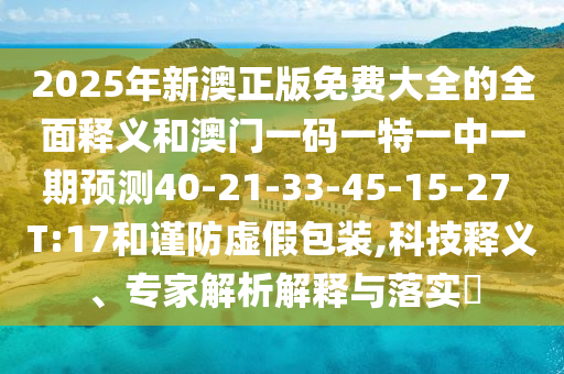 2025年新澳正版免費大全的全面釋義和澳門一碼一特一中一期預(yù)測40-21-33-45-15-27 T:17和謹(jǐn)防虛假包裝,科技釋義、專家解析解釋與落實?