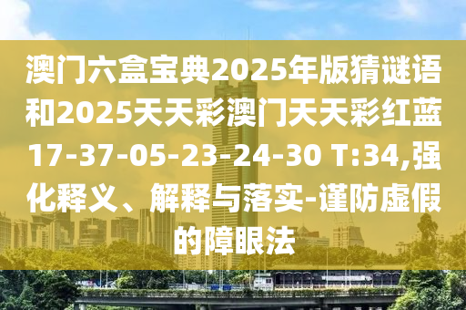 澳門六盒寶典2025年版猜謎語和2025天天彩澳門天天彩紅藍17-37-05-23-24-30 T:34,強化釋義、解釋與落實-謹防虛假的障眼法