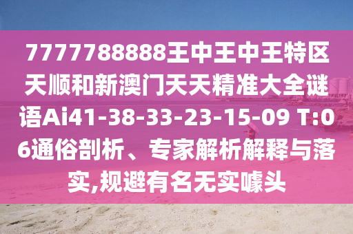 7777788888王中王中王特區(qū)天順和新澳門天天精準(zhǔn)大全謎語Ai41-38-33-23-15-09 T:06的通俗剖析、專家解析解釋與落實(shí)