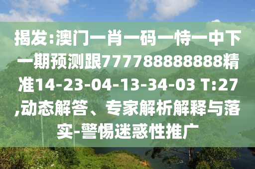 揭發:澳門一肖一碼一恃一中下一期預測跟777788888888精準14-23-04-13-34-03 T:27,動態解答、專家解析解釋與落實-警惕迷惑性推廣