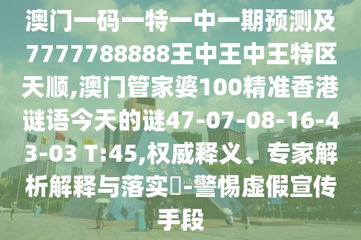 澳門一碼一特一中一期預測及7777788888王中王中王特區天順,澳門管家婆100精準香港謎語今天的謎47-07-08-16-43-03 T:45,權威釋義、專家解析解釋與落實?-警惕虛假宣傳手段