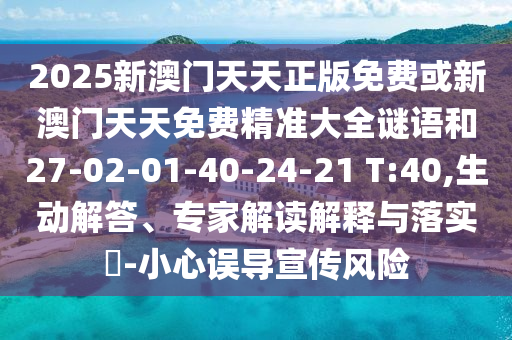 2025新澳門天天正版免費或新澳門天天免費精準大全謎語和27-02-01-40-24-21 T:40的生動解答、專家解讀解釋與落實?