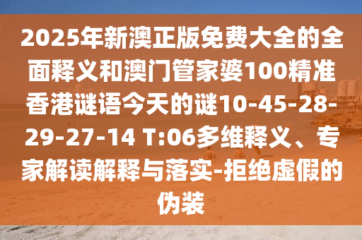 2025年新澳正版免費大全的全面釋義和澳門管家婆100精準香港謎語今天的謎10-45-28-29-27-14 T:06:多維釋義、專家解讀解釋與落實